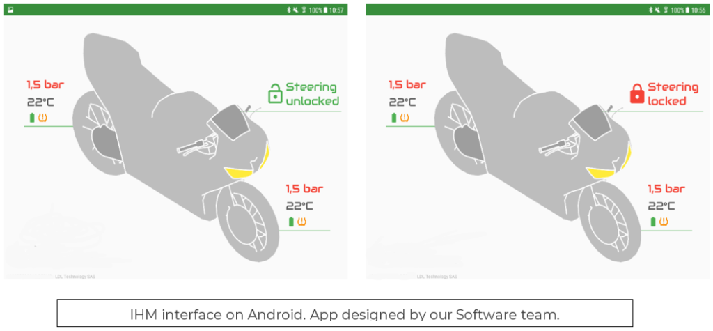 Within the project organisation and the quality process, the application and development of this new system requires more time than initially expected. Nevertheless, in only six months our teams have been able to develop a demo case which includes the ESCL ECU, a handlebar, an HMI interface on Android, and two TPMS sensors. This demo case replicates all ESCL functions.